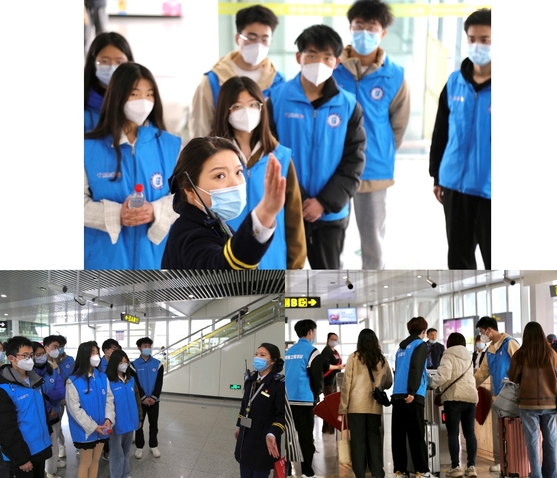 在地铁工作人员的现场教学下,志愿者学习了车站基本设施设备和紧急救援知识,并在客流高峰期引导乘客进站、帮助乘客购买车票,与地铁站工作人员一同为市民创造良好的出行环境。