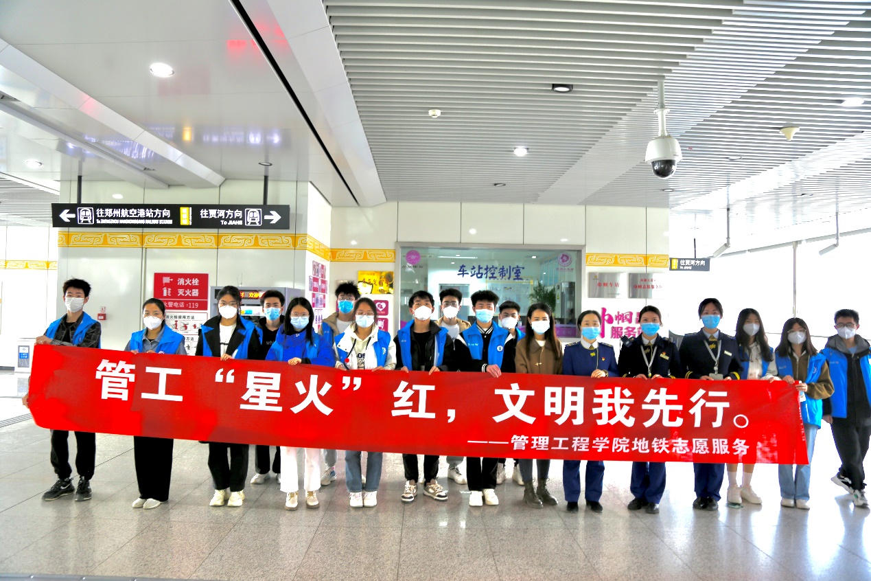 为传承雷锋精神,弘扬时代新风,让春日处处闪耀“志愿红”,3月22日,管理工程学院星火青年志愿服务队前往郑州地铁二号线双湖大道站开展地铁志愿服务活动。