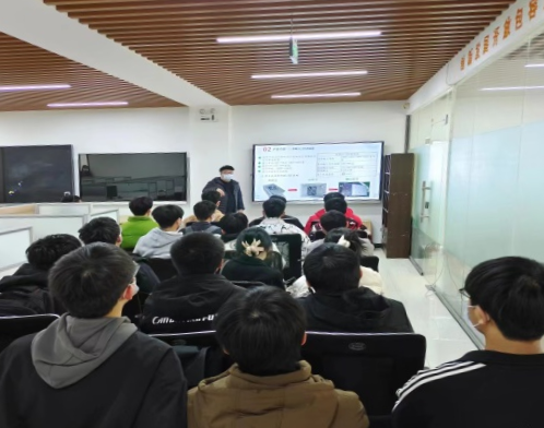 河南测祥科技有限公司坐落于郑州市高新区郑州亿达科技城,产品覆盖新能源汽车、轨道交通、通信基站、电力操作、光伏发电、军工等各类能源领域。我校校友通信1841班郭敬揩、电气1942班梁雨腾分别对公司产品生产开发流程、工程师成长、产品生产环节向同学们进行了介绍,现场并对同学们提出的问题进行了现场解答。