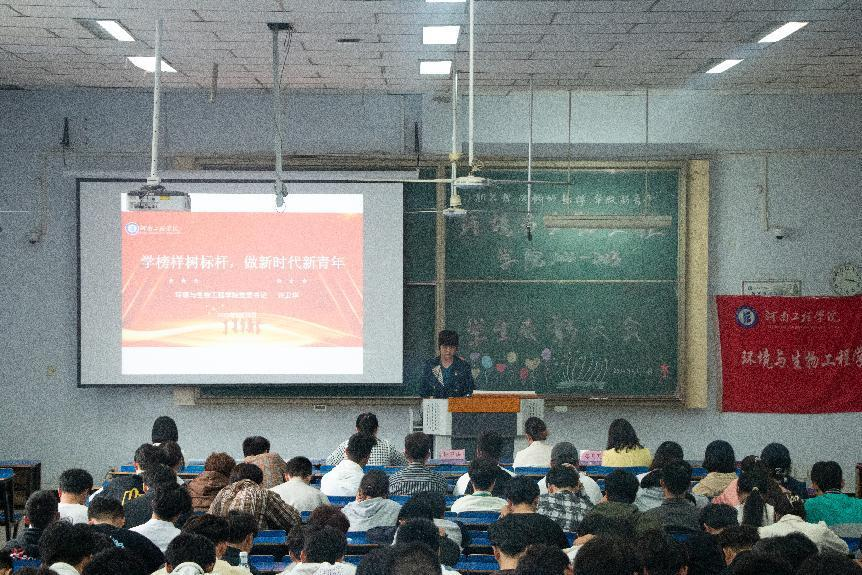 为深入推进以学习为美、奋斗为美、成才为美的学风建设,充分发挥榜样示范带动作用,更好展现学院青年学子风采, 5月10日下午,环境与生物工程学院在西校区6J101召开“学习新思想 选树好榜样 争做新青年”2022-2023学年学生表彰大会暨学风建设专项行动启动仪式。学院党委书记许卫华、副书记邓天天、学工办老师、各班班委及学生代表近300人参加了会议,会议由徐荣敏主持。