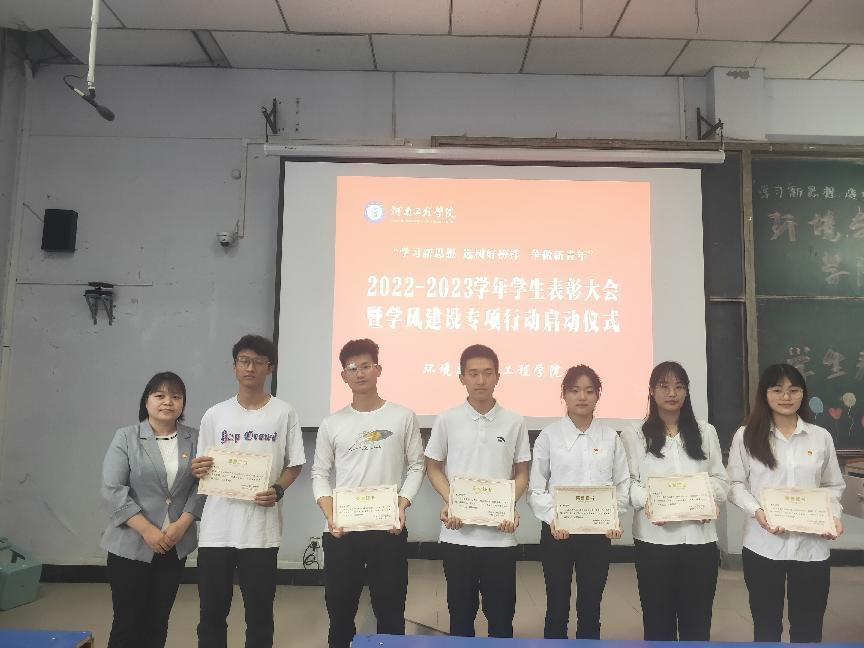 大会在庄严肃穆的国歌中拉开帷幕。会上邓天天宣读了《关于表彰2022年度河南工程学院三好学生、优秀学生干部和先进班集体的决定》《关于表彰2022年度河南工程学院优秀共青团员、优秀共青团干部和五四红旗团支部的决定》;范玲宣读了《关于表彰志愿服务先进个人和优秀志愿者的决定》《关于授予孙蜜蜜等九人“环境与生物工程学院体育标兵”荣誉称号的决定》《关于授予李炎燃等13人“环境与生物工程学院创新创业标兵”荣誉称号的决定》。河南省五四红旗团支部代表徐洋洋等8位同学从传承“五四精神”、弘扬志愿精神、增强集体凝聚力、个人成长、学习心得等方面进行了交流发言,与会老师为先进集体和优秀个人代表进行了颁奖。