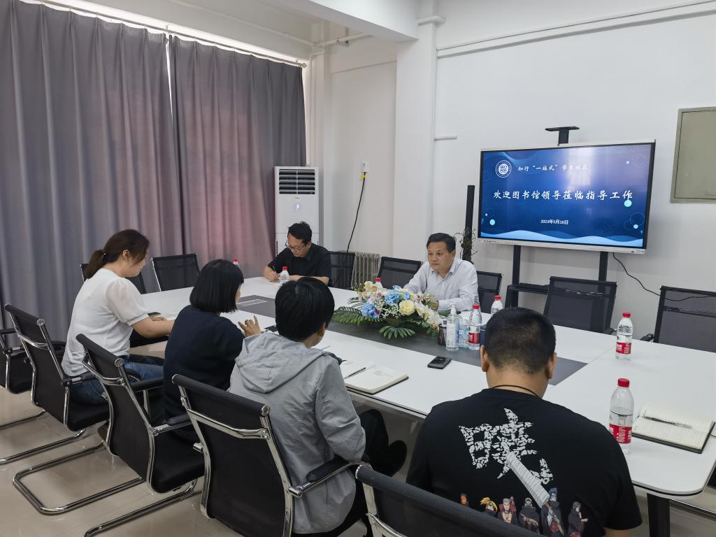 5月16日下午,图书馆馆长王公忠、采编部主任胡献慧到南区学生中心(知行“一站式”学生社区)开展调研工作。南区学生中心(知行“一站式”学生社区)主任方月、副主任苏湉,及部分社区育人导师陪同参观。
