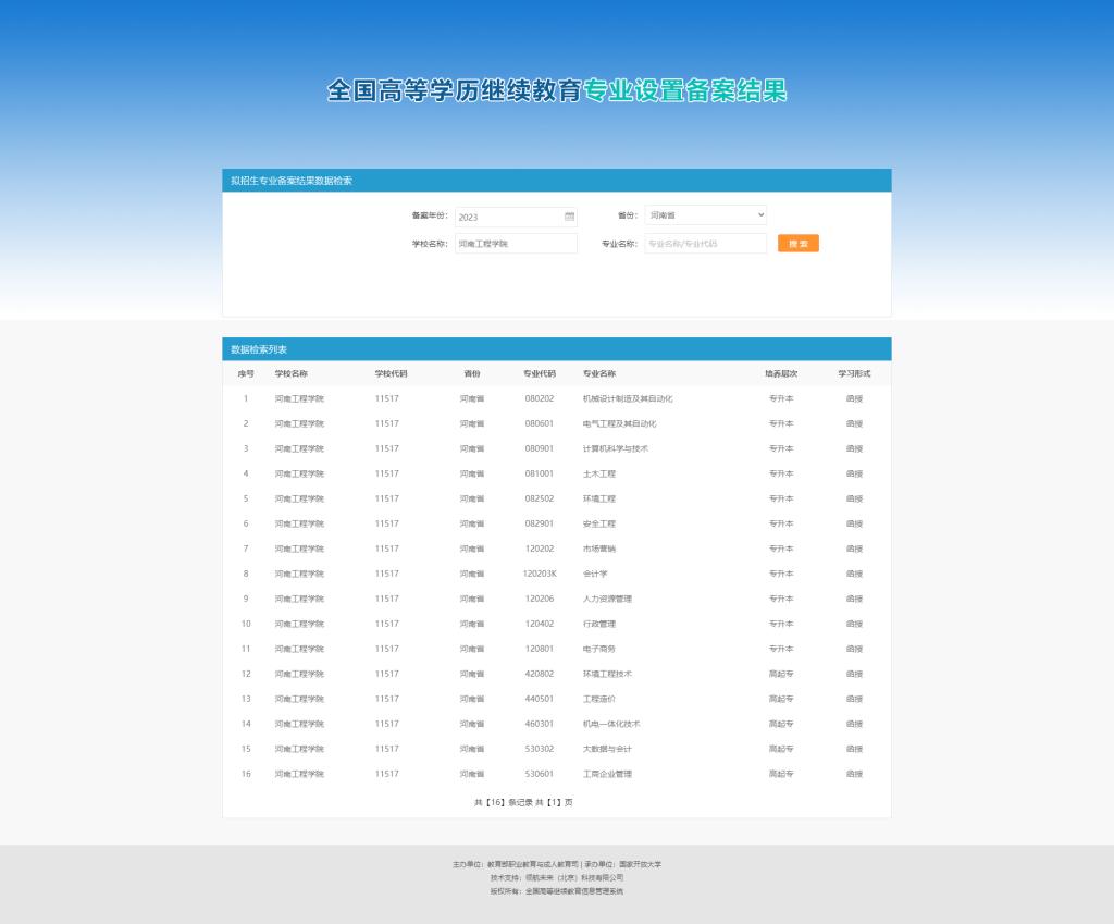 日前,教育部公布了2023年全国高等学历继续教育招生专业备案结果,我校2023年申报的高等学历继续教育16个招生专业全部获批。