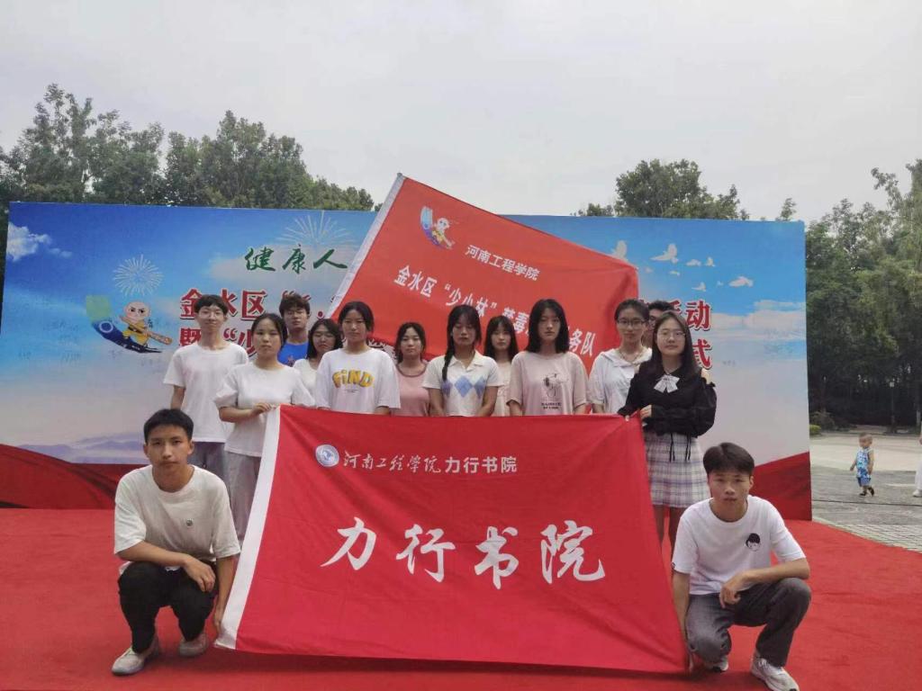 为大力倡导“健康人生、绿色无毒”生活理念,不断增强全民防范毒品的意识和能力,在第36个国际禁毒日来临之际,郑州市金水区禁毒办在金水区文博广场开展禁毒集中宣传。6月25日上午8点,力行书院15名大学生志愿者代表河南工程学院参加了金水区“6.26”国际禁毒日宣传暨“少小林”禁毒志愿服务队授旗仪式。郑州市禁毒委、金水区禁毒委相关负责同志和金水区八支“少小林”禁毒志愿服务队参加活动。