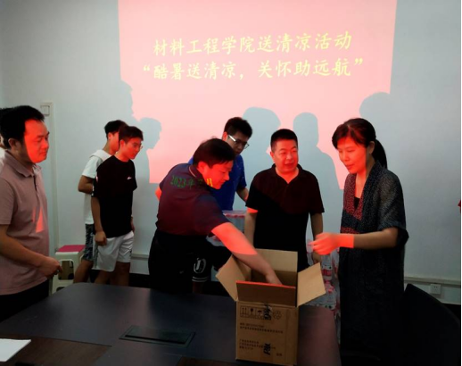 正值炎炎烈日盛夏时节,为帮助考研学子缓解备考压力,坚定考研信心,积极备考,同时了解留校学子的思想、生活、学习情况,帮助大家解决实际问题,7月26日,材料工程学院开展暑假留校考研学子慰问暨考研护航活动。学院党委书记辛长征、院长王振领、副书记金玲和副院长刘少辉为备战考研的学子们送去清凉和关怀。