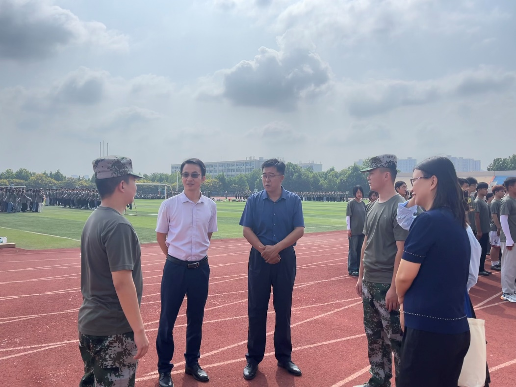 9月13日上午,管理工程学院党委书记张立军、院长黄德金、党委副书记曹冰和辅导员深入2023级军训现场,看望慰问军训学生和教官。