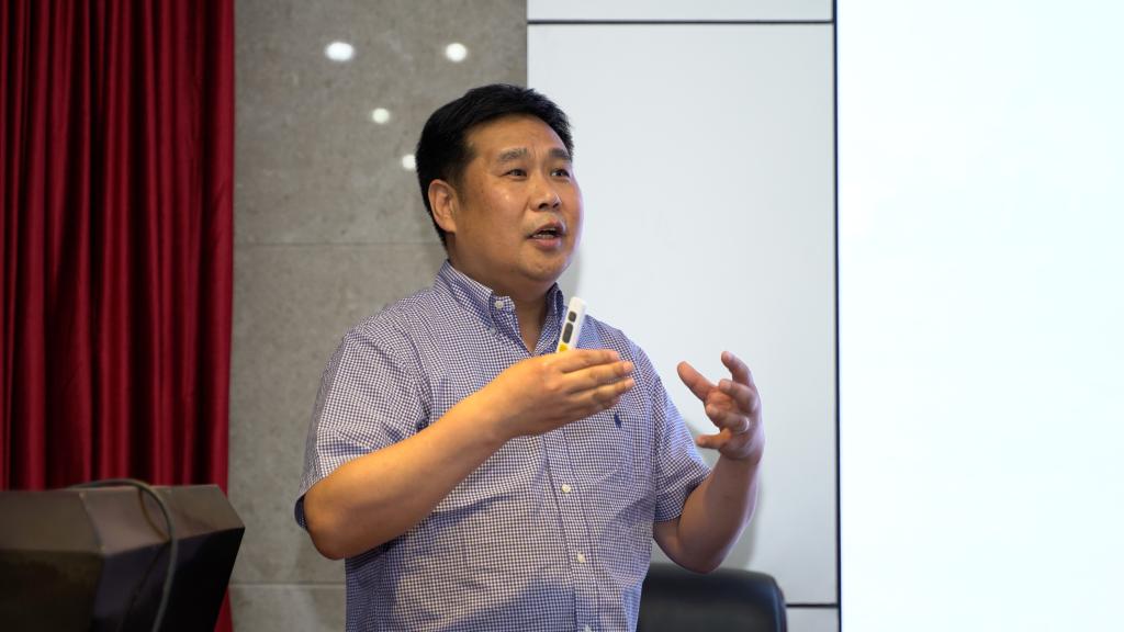黄德金对刘斌教授莅临指导表示热烈欢迎,并介绍了刘教授丰富的研究经历和研究成果。黄德金指出,刘教授的研究成果数量大、质量高,4项国家自然科学基金面上项目有3项后评估为特优和优秀,是我校广大科研工作者学习的榜样,希望与会老师能尽情享受这场学术盛宴,助力各自的科研工作更上新台阶。