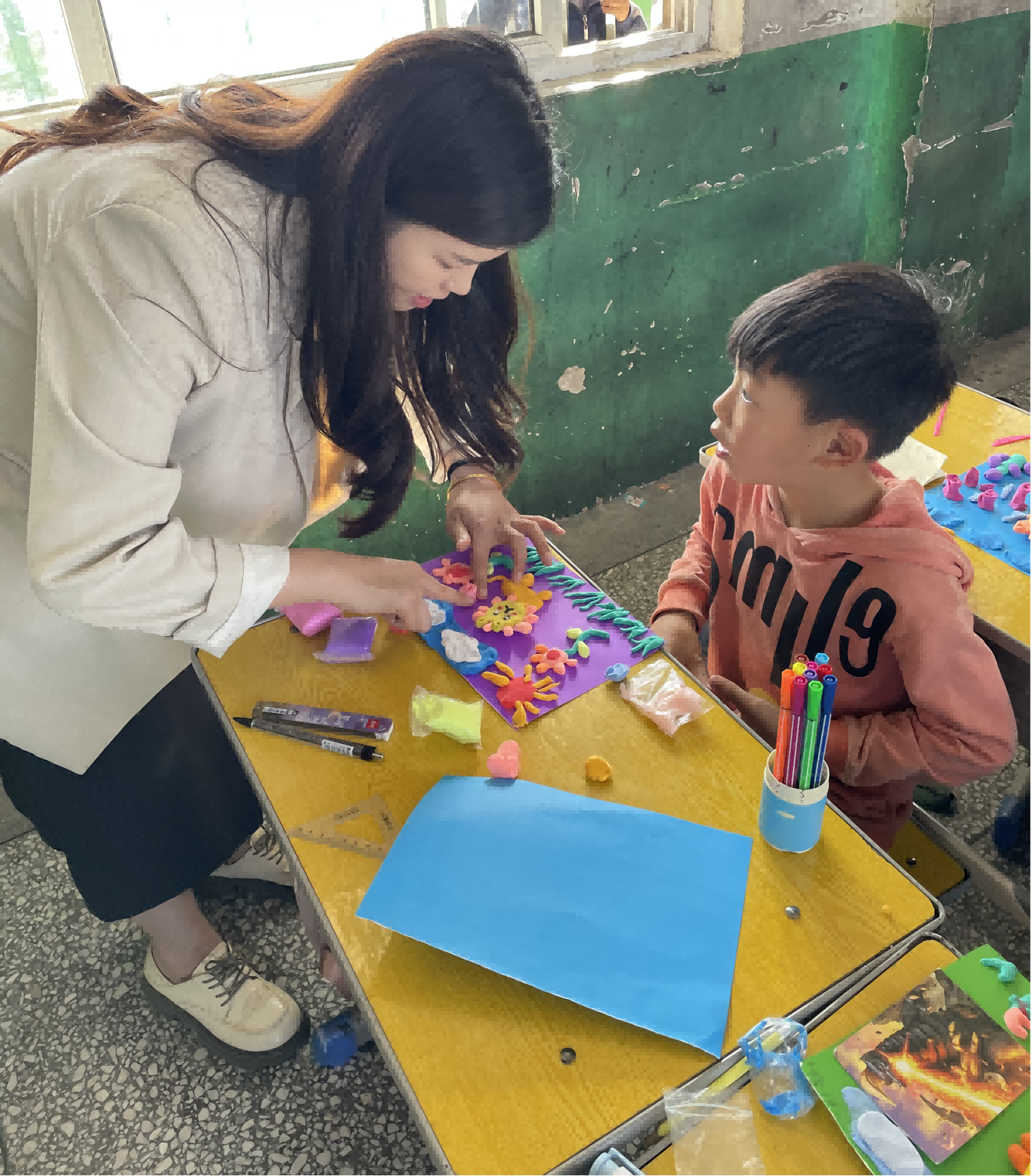 “老师,熊猫怎么画呀?”“老师,用彩泥怎么做花朵呀?”“老师,这首歌您能教教我吗?”“老师,这个动作我还是不会...”······在支教课堂上,孩子们对自己所学的美术、音乐和舞蹈纷纷表现出了极大的兴趣和喜爱,一笔笔线条为纯真的童年画上了更加丰富的色彩,一个个音符为简单的生活添上了快乐的节奏,一个个动作让缓慢的时光多了些温馨和优美。