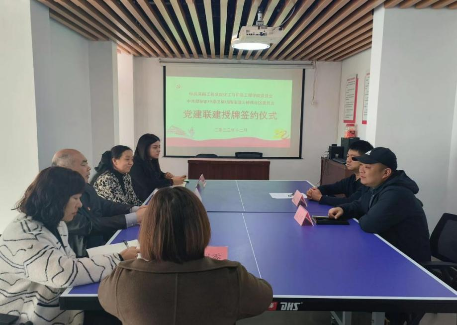 为进一步强化党建引领基层治理,拓展高校基层党建工作新渠道,赋予基层社区治理新动能,推动高校与社区联建聚合力、共建促发展,12月6日上午,中共河南工程学院化工与印染工程学院委员会与中共郑州市中原区棉纺路街道三棉西社区委员会在三棉西社区举行党建共建协议签约仪式。学院党委书记郑汝东、党委副书记李萌、三棉西社区党委书记孔令辉、党委副书记辛欣等参加仪式。