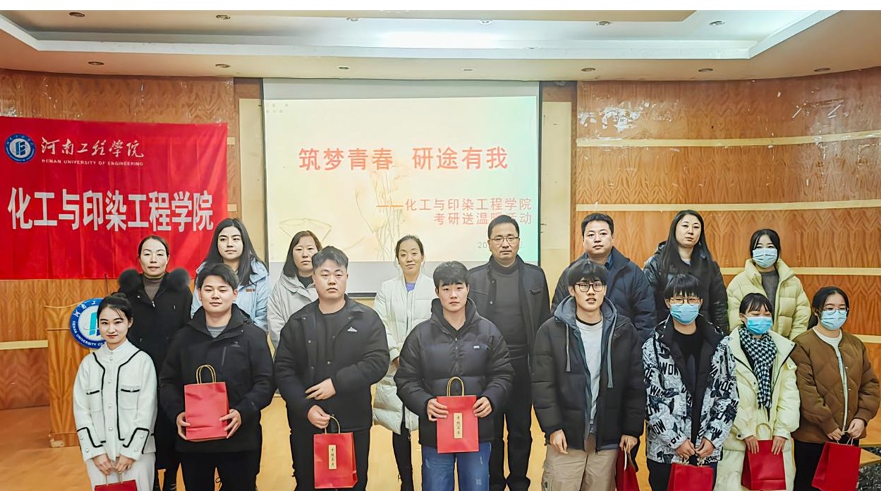 冬日寒风凛冽,为鼓舞我院考研学子士气,缓解大家的备考压力,坚定考研必胜信心。12月12日下午,化工与印染工程学院于桐柏路校区学术报告厅举办“筑梦青春,研途有我”考研送温暖活动,学院院长王非、党委副书记李萌、副院长曹机良、学工办全体老师和毕业班考研学生参加本次活动。
