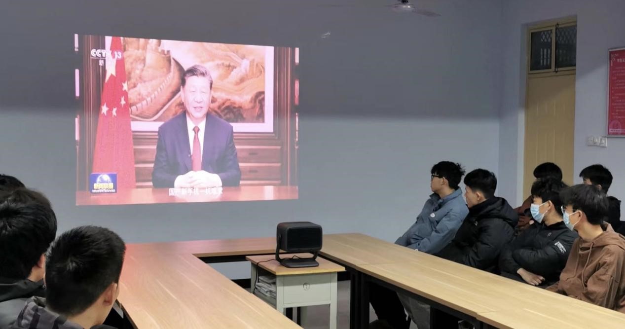 师生们认真收看聆听,用心感受字里行间的温暖和力量。“经历了风雨,看到了美丽风景,取得了沉甸甸的收获”。新年贺词中,习近平总书记娓娓讲述即将过去的一年砥砺初心的不懈奋斗,深情回首伟大祖国迈向繁荣复兴的坚实步伐。“2024年,我们要坚定不移推进中国式现代化建设”“我们还要有强烈的责任感、使命感”。习近平总书记在贺词中温暖的话语、殷切的期待,激励着同学们坚定理想信念,心怀对未来的美好希冀,在奋进中拥抱梦想、成就未来。