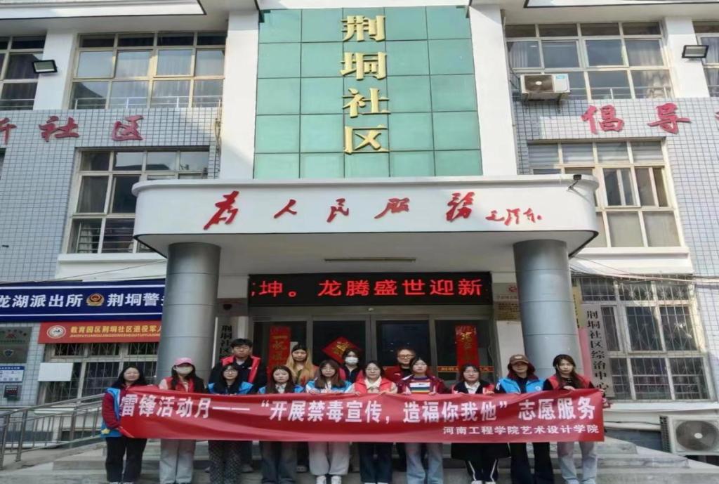 学习雷锋精神,争做时代楷模。为鼓励新时代青年弘扬和践行雷锋精神,艺术设计学院组织团支部志愿者深入荆垌社区开展“雷锋活动月系列活动之——‘开展禁毒宣传,造福你我他’志愿服务”活动。