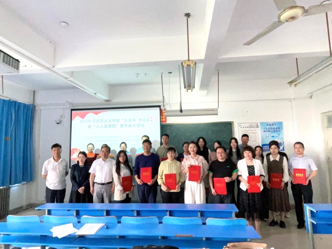 为贯彻落实《中共河南省委宣传部中共河南省委教育工委河南省教育厅关于开展2024年度全省学校 思想政治理论课教学技能“大练兵、 大比武、大展示”活动的通知》,进一步提升全校教师思政课教学能力,推动教学质量提升,以优异成绩迎接中华人民共和国成立75周年,4月24日下午,我校在7号教学楼5楼举办了“大练兵、大比武”暨“人人说课程”教学展示活动,活动由马克思主义学院副院长王晶主持,全校思政课教师参加了本次展示活动。