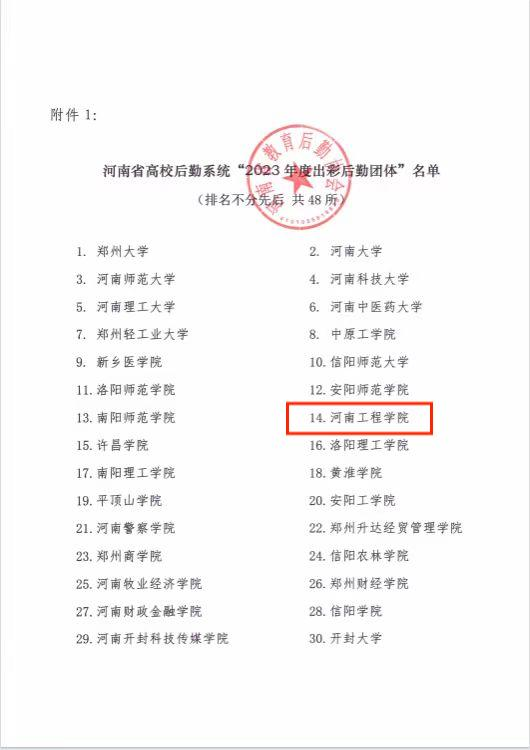 近日,河南省教育后勤协会下发《关于拟表彰全省教育后勤系统“出彩后勤”团体和个人的通知》,我校荣获“2023年度出彩后勤团体”称号,侯春芳、黄马超、王鑫三位同志荣获“2023年度出彩后勤人”称号。
