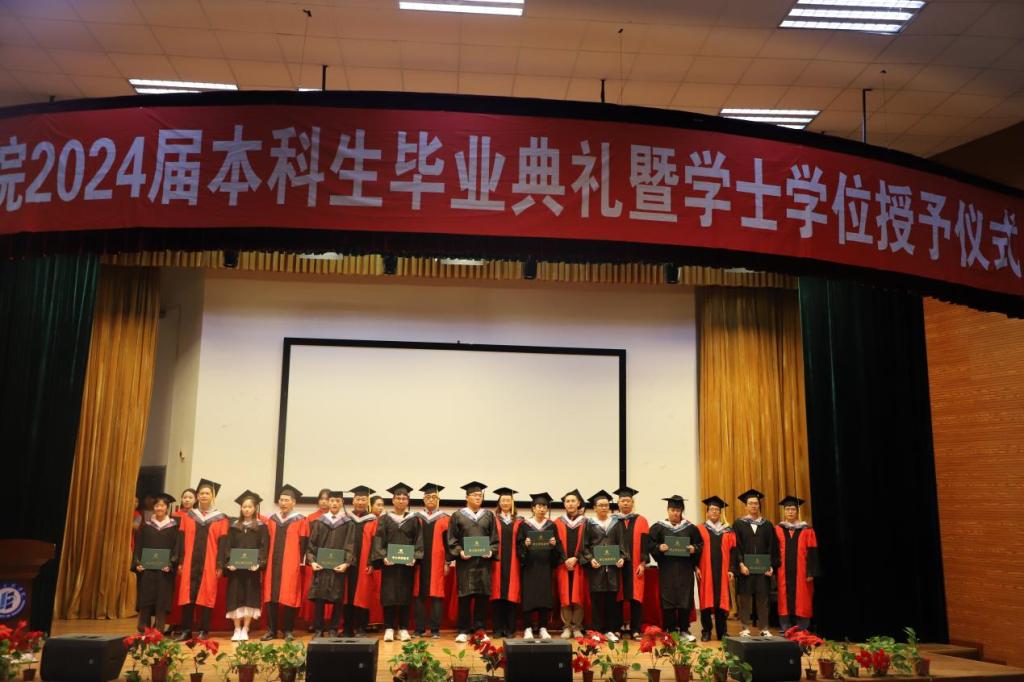 在庄严的国歌声中,我院2024届毕业生共同迎来求学生涯中的难忘时刻。学院党委副书记管荣伟宣读了2024届省级、校级优秀毕业生名单,副院长赵严伟宣读了2024届获得学士学位学生名单,副院长田超杰宣读了考取研究生学生名单。学院领导和与会老师为上述毕业生颁发奖励证书并合影留念。