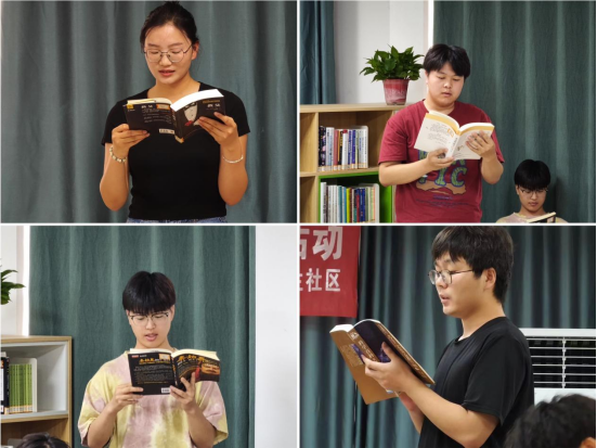 活动开始,同学们自由挑选一本感兴趣的书籍进行2小时的沉浸式阅读,书目涉及哲学、历史、百科等主题。朗诵环节同学们挑选书中的精彩片段,以声情并茂的方式呈现给读者。抑扬顿挫的语调,饱含深情的演绎,不仅让观众感受到了文字的魅力,更传递了书中人物的故事与情感。评委根据同学们的朗诵表现进行现场打分,评选出最佳朗诵者。最后,评委对同学们的整体表现进行了点评,鼓励他们坚持读好书,在阅读中不断进步与成长。