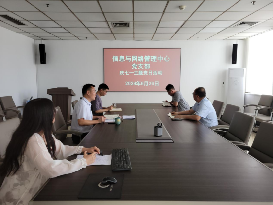 6月26日,信息与网络管理中心党支部在西校区图书馆八楼会议室开展庆“七一”主题党日活动,活动由支部书记马小雨主持,支部全体党员参加。