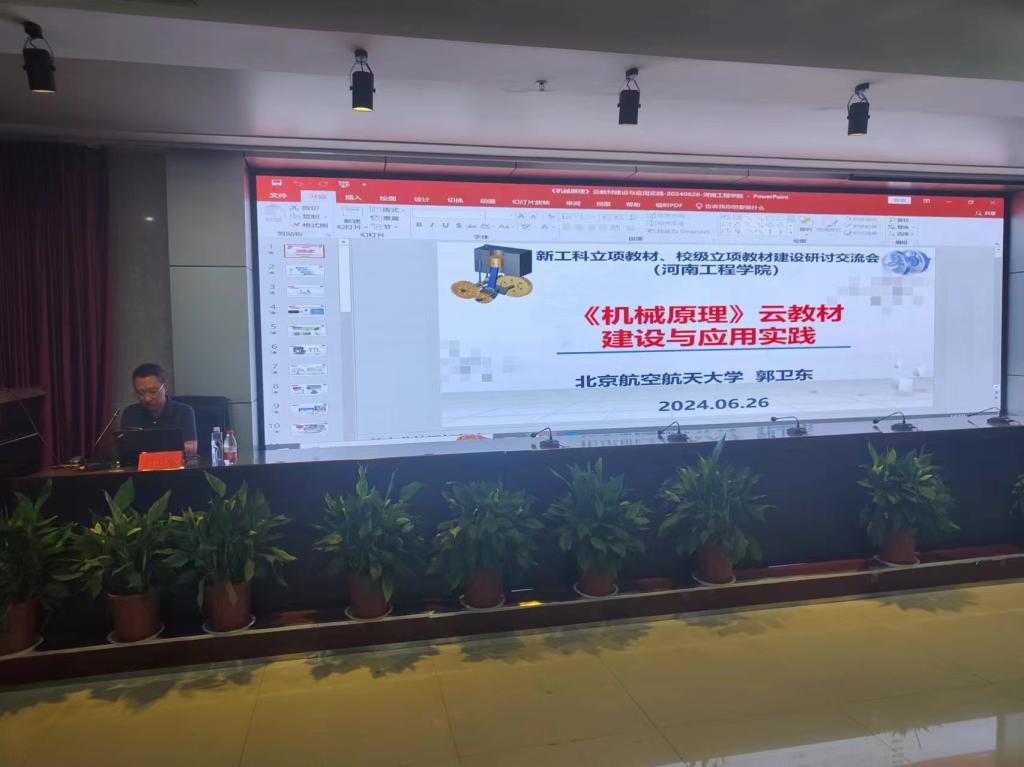 郭卫东以《机械原理》云教材建设与应用实践为题,从课程建设、云教材建设及应用、云教材建设的体会、如何利用新形态教材实现线上线下混合式教学、数字教材发展趋势等做数字化教材建设的主题报告。接着,许闻闻对新形态数字云教材策划与创作编写、数字教材建设与应用实践分享、新形态教材相关政策支持、数字教材选题申报出版流程等方面进行了具体培训。会议尾声,与会教师就数字化教材设计、编写、出版等问题进行了广泛研讨。