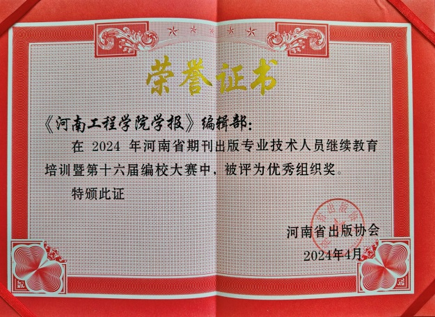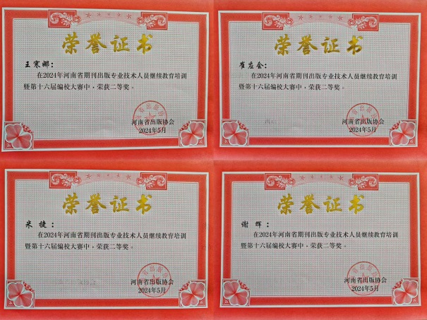 河南省出版协会组织的河南省期刊出版专业技术人员继续教育培训暨第十六届编校大赛于2024年4月16日在河南信阳举行,共有140人参赛。学报编辑部高度重视,积极组织参与,派出4名同志参加了此次编校大赛。经过专家公开、公平、公正阅卷,综合评定,评选出单位优秀组织奖45个,个人一等奖12人,个人二等奖46人。我校学报编辑部编辑人员在比赛中取得较好的成绩,崔应会、谢辉、米捷、王寒娜均获二等奖,学报编辑部获得优秀组织奖。