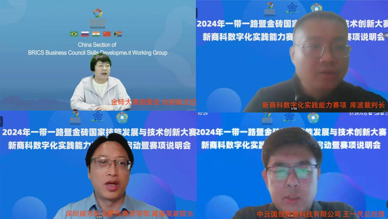 9月7日,2024“一带一路”暨金砖国家技能发展与技术创新大赛(简称金砖大赛)新商科数字化实践能力赛项召开线上启动会,商学院院长高詹教授在启动会上作为参赛院校代表发表致辞,进一步展示了商学院在商科教育数字化转型方面的决心与信心。