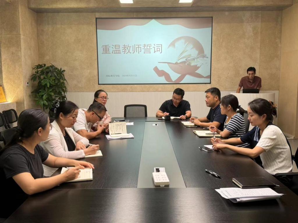 9月11日,在国际教育学院会议室8307,一场意义非凡的重温教师誓词活动成功举办。此次活动旨在通过回顾并再次宣读教师誓词,激发全体教师的职业荣誉感和使命感,进一步坚定他们为教育事业奉献终身的信念。