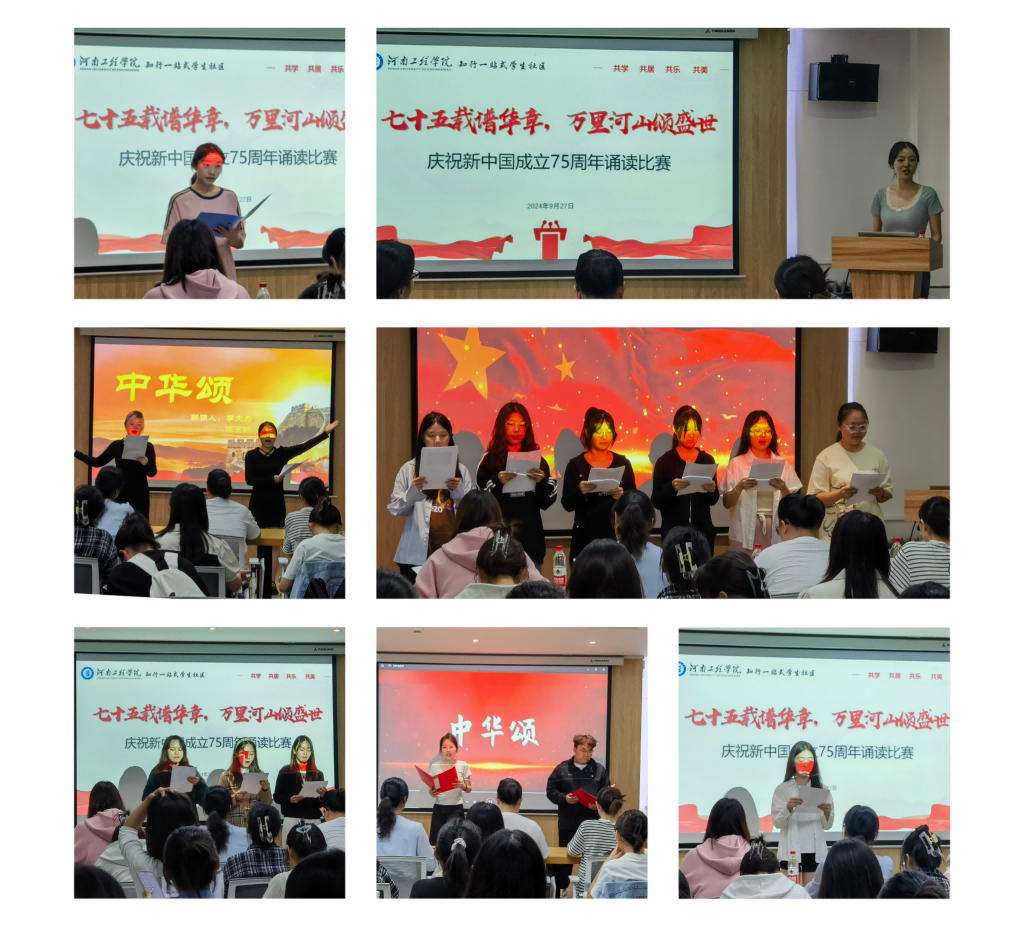 活动现场,气氛热烈而庄重。来自不同楼栋的同学们积极参与,他们以饱满的热情、真挚的情感,将一篇篇脍炙人口的诗文演绎得淋漓尽致。从《沁园春·国庆》的豪迈壮阔,到《祖国啊,我亲爱的祖国》的深情呼唤,再到《我骄傲,我是中国人》的激情澎湃,每一段诵读都仿佛穿越时空,带领听众们重温了那些激动人心的历史瞬间,感受到了中华人民共和国成立以来取得的辉煌成就。