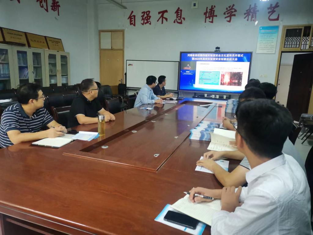 为全方位加强实验室安全常态化监管和督导,推动学校实验室安全文化建设,9月27日上午,我校正式启动“河南工程学院第四届实验室安全文化宣传月”活动,启动会主会场设在综合楼一楼会议室,各院部主管领导、实验中心主任、实验室全体老师、科研实验室安全责任人参加了此次会议,会议由实验室管理处副处长谢瑞主持。同时,各院部设置分会场,组织师生观看河南省高校第四届实验室安全文化宣传月开幕式直播。