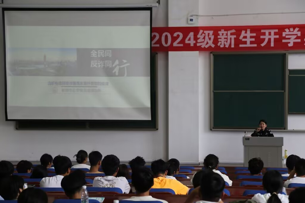 为进一步做好学生安全教育工作,帮助学院新生提升反诈意识,更好地适应大学新生活,10月9日,管理工程学院在9A228报告厅召开新生反诈骗宣传教育大会。大会邀请龙湖派出所民警姚静进行反诈宣讲,学校保卫处副处长胡新、学院辅导员和2024级全体新生参加会议。
