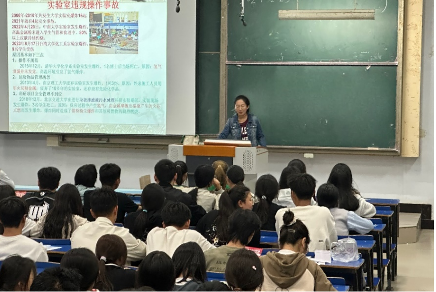 为切实增强学生的实验室安全防范意识和应急避险能力,强化实验室安全管理,建立安全教育的长效机制,环境与生物工程学院于10月15日在6号教学楼阶梯教室举办实验室安全教育培训讲座。培训内容涵盖了实验室安全、仪器设备操作安全、化学品安全、废弃物管理及突发事件应急处置等方面,旨在全面提升学生安全意识和防护技能。本次培训由学院实验中心教师徐晶晶博士主讲,面向全院大一新生开展。