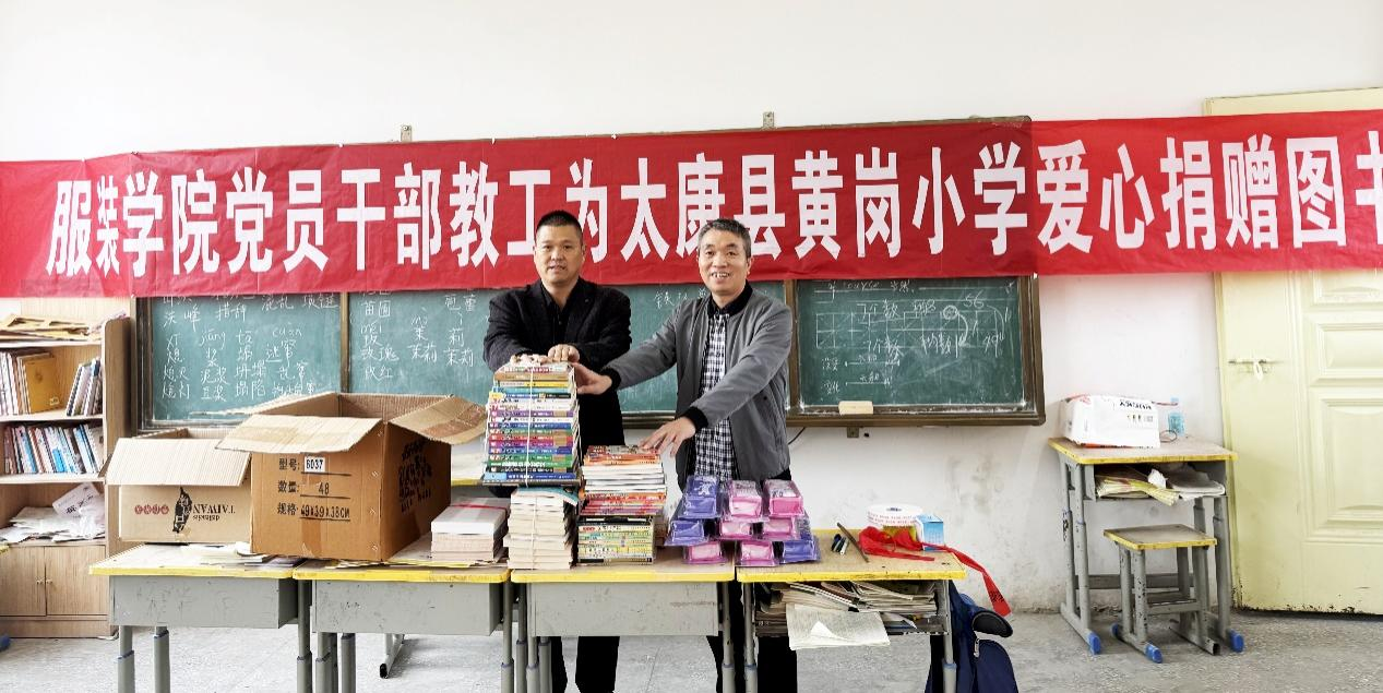 潘景果代表服装学院全体教职员工向黄岗小学捐献了100余本课外读物和一箱文具盒。本次图书捐献为河南工程学院与黄岗小学共建的“读书角”丰富了文本储备。