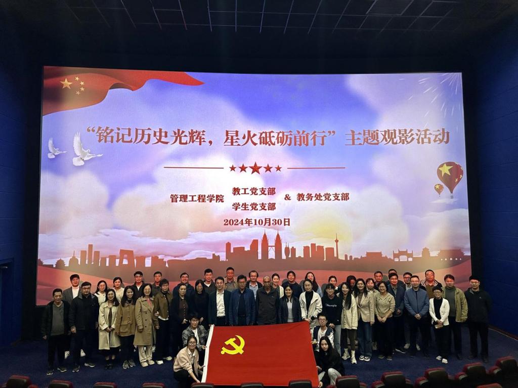 为进一步加强支部建设,丰富党员教育形式,10 月 30 日,管理工程学院教工党支部、学生党支部与教务处党支部联合开展“铭记历史光辉,星火砥砺前行”主题党日活动,共同观看了电影《志愿军:存亡之战》。