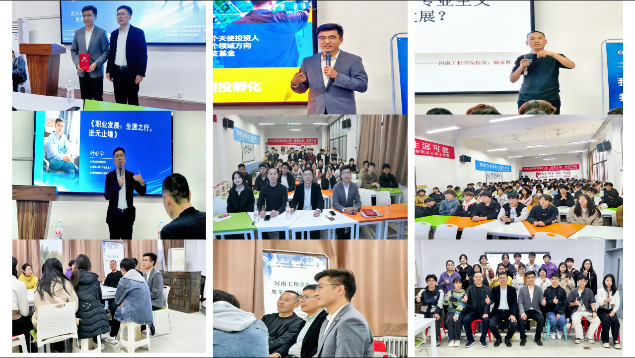 11月9日下午,创新创业学院联合商学院在创新创业中心一楼激发中心举办“进无止境,更多可能”第八期创生涯思享会。本次活动由职业生涯发展协会、黑苹果青年社团、职说心语工作室联合承办,特聘职场导师(郑州八爪鱼教育科技有限公司总经理)王智晓、校友导师(中原银行郑州普济路支行行长)杨家胜、就业指导副教授叶心宇与我校180余名学生参与活动。