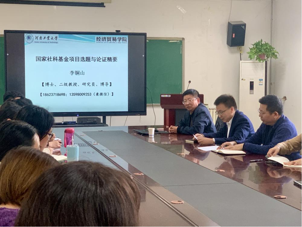 为提高2025年度高层次项目申报的质量和成功率,经济贸易学院于11月8日下午在9B316学院会议室举办高层次项目申报选题论证。本次会议邀请河南工业大学博士生导师李铜山教授进行现场指导。院长张建华主持会议,学院及其他相关学院博士等二十余人参加。