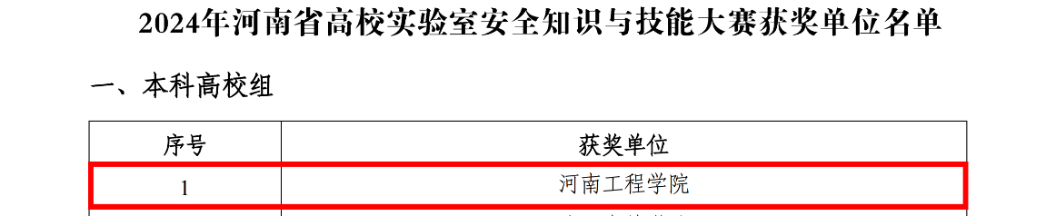 近日,河南省高校实验室工作研究会下发《关于表彰“河南省高校第四届实验室安全文化宣传月”优秀组织奖获奖单位的通知》(豫高实〔2024〕11号)、《关于表彰河南省高校实验室安全知识与技能大赛获奖单位和获奖个人的通知》(豫高实〔2024〕12号)等2项文件,我校分别荣获“河南省高校第四届实验室安全文化宣传月”优秀组织奖、“2024年河南省高校实验室安全知识与技能大赛优秀组织奖”,牛涵芳等3名同学荣获河南省高校实验室安全知识与技能大赛一等奖,14名同学荣获二等奖,15名同学荣获三等奖,46名同学荣获优秀奖,实现了我校在优秀组织奖和学生个人获奖质量与数量的新突破。
