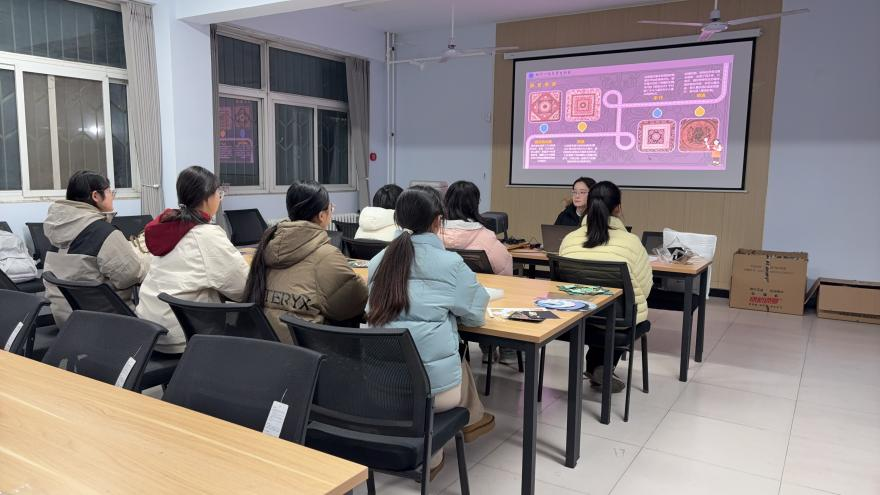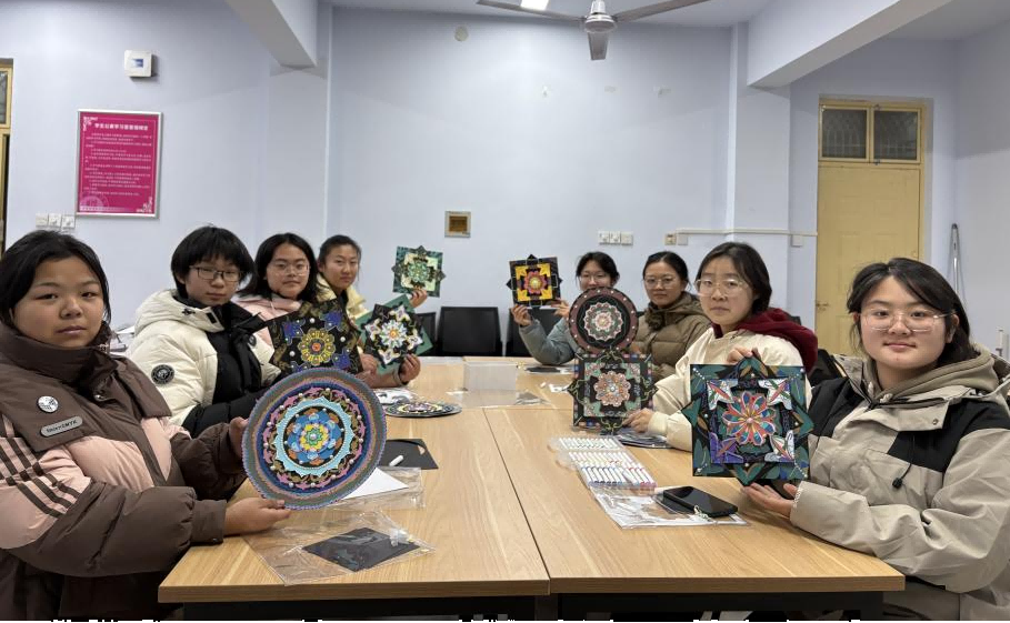 活动伊始,同学们首先通过观看视频,对敦煌藻井有了初步的认识和了解。随后,邓歌老师为大家详细讲解了敦煌藻井的构图特点、色彩搭配及绘画技巧,一边示范一边耐心解答同学们提出的问题。绘画过程中,同学们充分发挥自己的想象力,大家相互交流、切磋技艺,共同享受着绘画的乐趣,创作出一幅幅精美的画作。