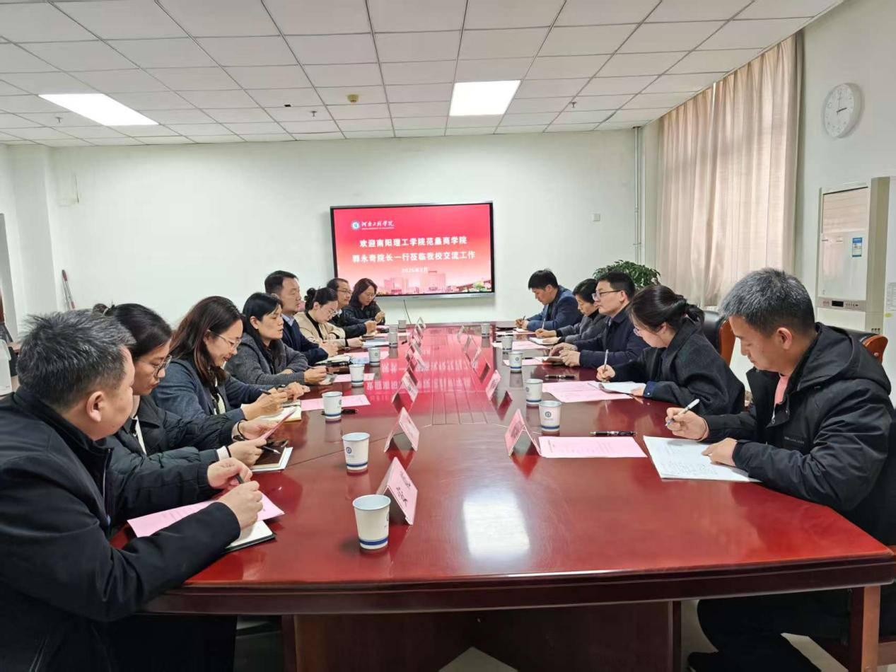 3月10日下午,南阳理工学院范蠡商学院一行来访我校开展调研交流活动,双方围绕教学成果奖申报、专业建设等议题展开深入探讨,座谈会由教务处副处长张珺主持。