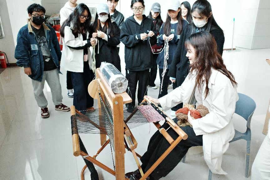 系列活动之手工织布体验也吸引了许多师生的参与。在专业老师的指导下,参与者使用植物染纱线亲自上机操作,体验传统织布的乐趣。大家沉浸在织布中,感受古老技艺的独特魅力。许多参与者表示,亲手织出一块布料的成就感令人难忘。