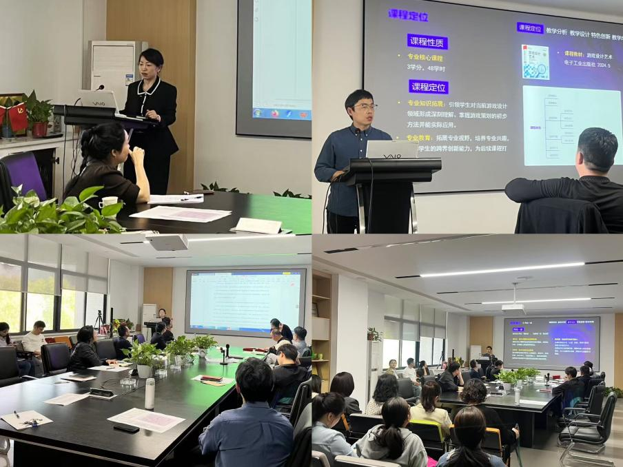 分享会上,吴涛和祁萌两位教师代表分别以《游戏策略与开发》和《空间形态与技术》课程为例,从教学目标设定、学情分析、创新举措、创新举措、实践效果及成果辐射等教学创新成果进行汇报,并分享自身备赛的经验,为参会教师提供了多维度的备赛思路。