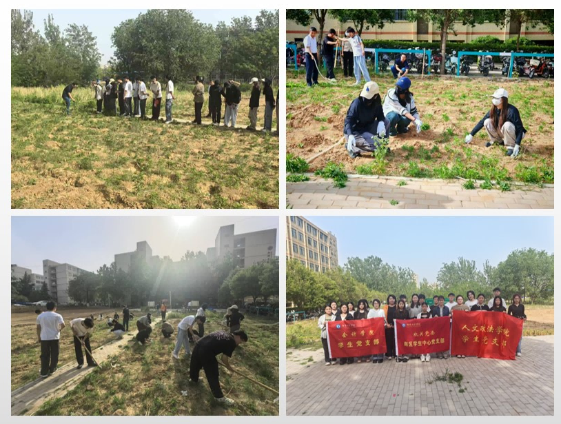 5月7日下午,知行一站式学生社区6号楼功能型党支部联合会计学院学生第四党支部、人文政法学院学生党支部在“知行·百草园”劳动教育实践基地开展“浇植育苗映党心”联合党日活动。师生党员们带着期许,浇灌向日葵苗儿,浸透汗水的身影与土地相映成画,专注的面庞化作青春担当的鲜明注脚,勾勒出践行劳动精神的生动图景。