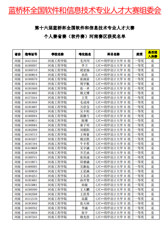 近日,第十六届蓝桥杯全国软件和信息技术专业人才大赛省赛成绩揭晓,我校学子共斩获省级一等奖47项、二等奖89项、三等奖115项,获奖总数达251项。一等奖获奖数量较上届的36项增长30.6%,创历史新高。软件学院作为连续第五年承办省赛赛点的单位,本次共吸引全校各学院的468名选手参赛,赛事规模再创新高。