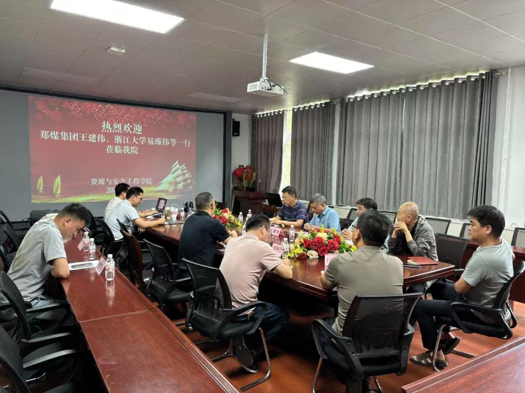 6月23日,郑州煤炭工业(集团)有限责任公司副总工程师王建伟一行5人、浙江大学易臻伟博士等到我校资源与安全工程学院开展技术交流访问。资源与安全工程学院院长郭军杰、副院长田坤云、孙光中以及相关骨干教师参加交流。