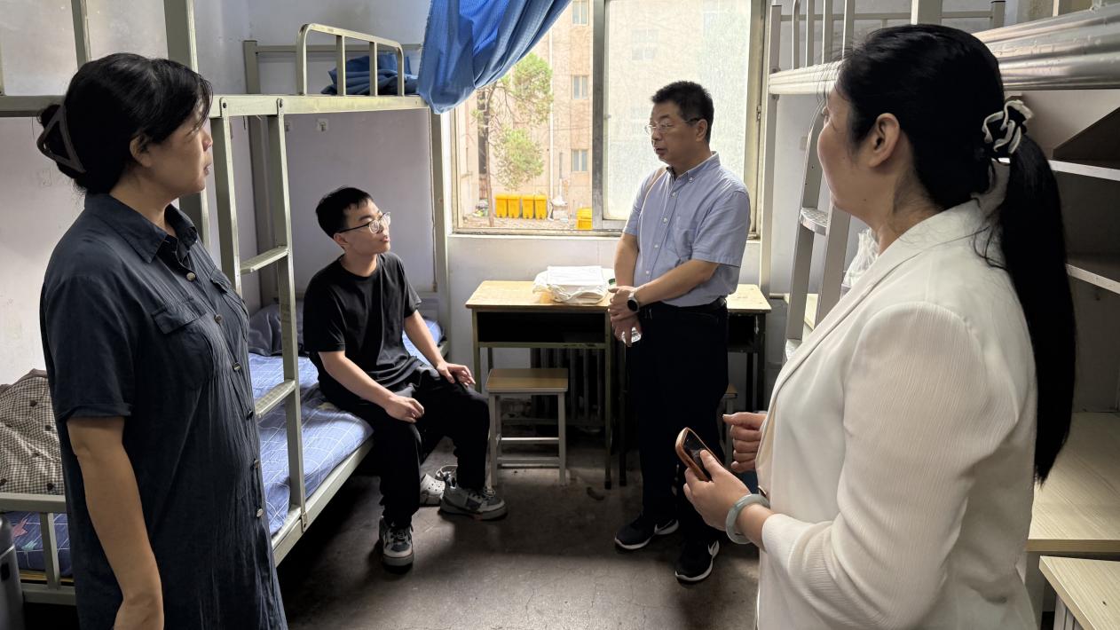 走访期间,学院党委书记辛长征、党委副书记金玲等班子成员深入学生宿舍。每到一处,都与新生亲切交谈,仔细查看宿舍卫生、设施状况,询问同学们初入校园的感受和适应情况,倾听大家对大学生活的期待与困惑。针对新生普遍关注的学业规划,辛长征鼓励大家积极探索专业兴趣,主动向学长学姐和老师取经;谈及生活问题,耐心叮嘱新生注重宿舍安全与团结,遇到困难及时向学院反映。交流中,金玲还结合学院特色,介绍丰富的校园活动,传递学院对新生全方位发展的重视与期待。