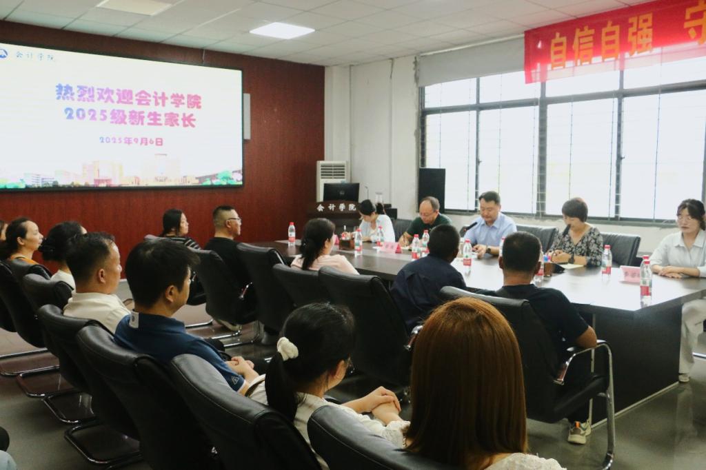 为加强家校间育人合力,携手共促2025级新生顺利融入大学生活,会计学院于9月6日下午在8号教学楼8342会议室举行2025级新生家长见面会。学院党委书记、院长程光,副书记张维、副院长刘根霞、教师裴艳丽以及新生辅导员李若琳出席,会议由党委副书记张维主持。