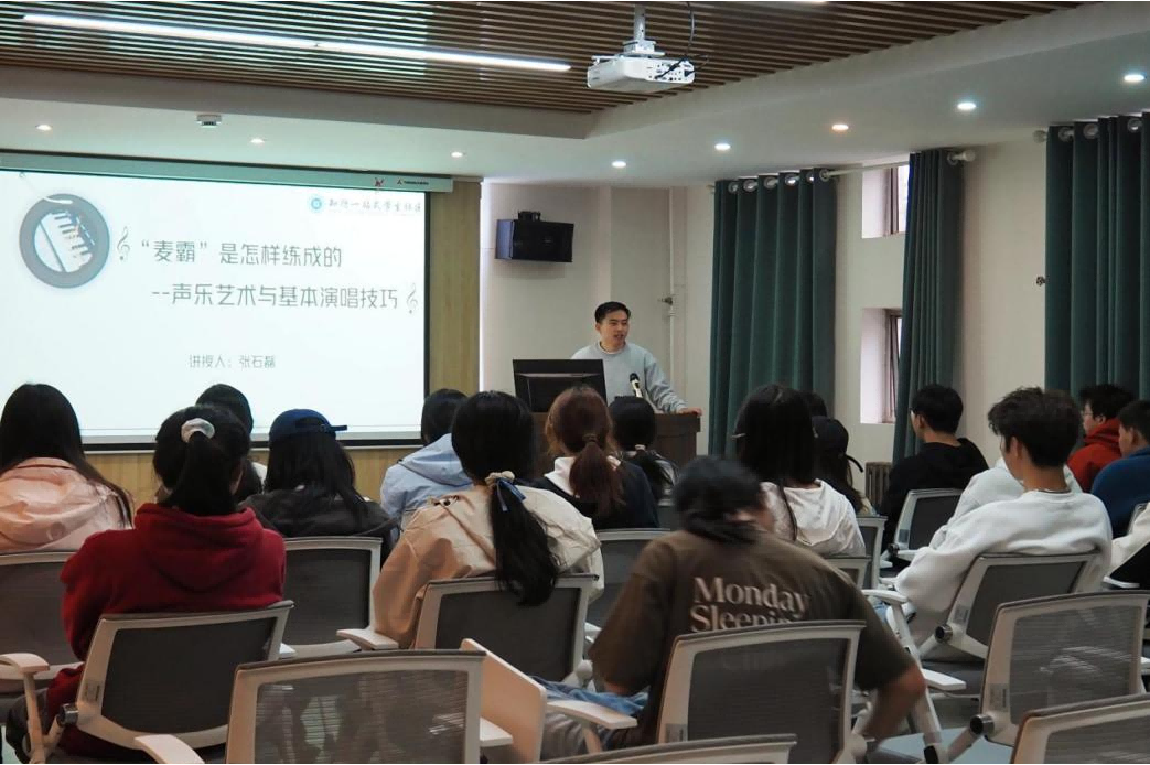 为丰富学生校园文化生活,提升审美与人文素养,10月16日下午,知行“一站式”学生社区在“知行·初心讲演厅”成功举办“‘麦霸’是怎样炼成的——声乐艺术与基本演唱技巧”美育沙龙。活动由住楼辅导员张石磊担任主讲,吸引了众多同学积极参与。