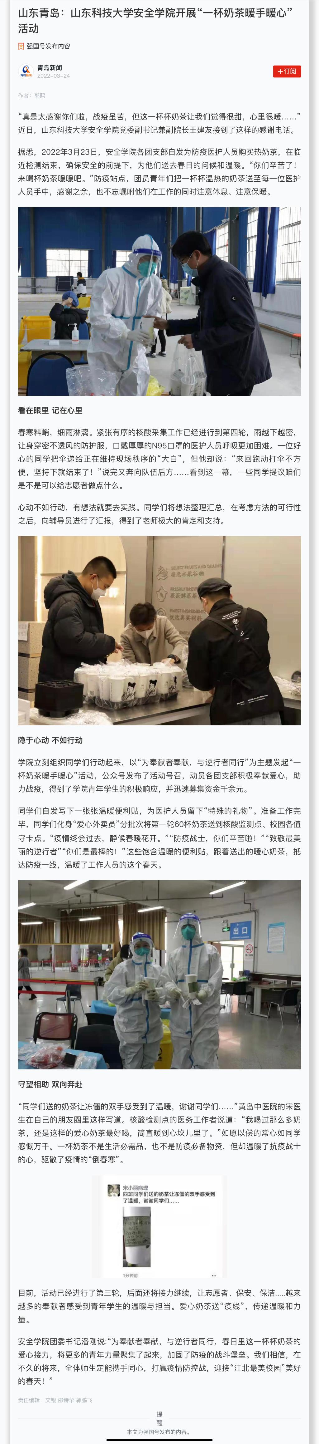 山东科技大学安全学院开展“一杯奶茶暖手暖心”活动