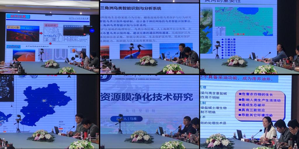 论坛由山东科技大学副校长、黄河三角洲地表过程与生态完整性研究院院长张建教授主持,张校长首先介绍了本次论坛的主题和举办意义,并鼓励与会老师积极响应国家重大战略目标,抓住发展机遇。本次论坛共有来自安全与环境工程学院,土木工程与建筑学院,海洋科学与工程学院,测绘与空间信息学院,化学与生物工程学院共六位专家学者做了汇报,报告内容涵盖黄河三角洲侵蚀岸线生态稳固、鸟类智能识别与分析、黄河下游水沙变化与河道响应、生态遥感水文研究进展、非常规水资源膜净化技术以及黄河三角洲石油污染盐碱土壤生物强化修复等,报告结束后,参会人员围绕黄河三角洲生态保护与修复开展了讨论。会议最后,张校长对以上老师的精彩汇报给予了肯定,并再次重申积极融入国家重大战略的重要意义。