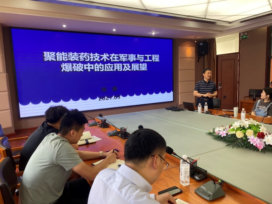 报告会上,龙源教授首先从聚能装药原理介绍了的聚能效应和金属聚能射流形成过程,结合原理详细叙述了聚能装药技术在在军事上、工程爆破中的广泛应用,最后龙源教授结合最新的研究介绍了聚能装药技术的发展方向。报告会后,龙源教授与师生展开了热烈的讨论,对同学们提出的问题进行了一一解答。报告会内容详实,运用了大量图像资料和数据,引领我院师生充分了解了聚能装药技术的研究前沿,激发了同学们的研究兴趣。