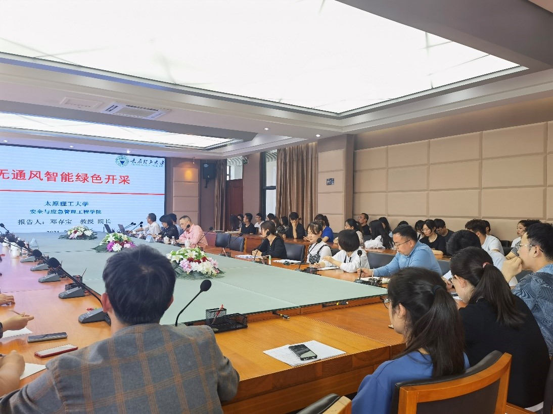 报告会上,邓存宝教授围绕“碳达峰、碳中和目标下的能源发展战略”,提出煤炭生产与技术革命。从“高浓度瓦斯抽采技术”、“无通风条件下电气设备降温技术”、“高可靠性智能成套装备研发”等五个方面介绍了无通风智能绿色开采的技术关键,并且指出无通风智能绿色开采消除了煤矿开采生产碳排放,破解了煤矿“以风防灾”和“因风致灾”的深层技术矛盾,推动煤矿安全重大进步,实现矿井“本质安全”,支撑煤炭行业早日实现“碳达峰、碳中和”。报告会后,邓存宝教授与师生展开了热烈的讨论,使大家对无通风智能绿色开采技术有了更加深入和全面的认识。