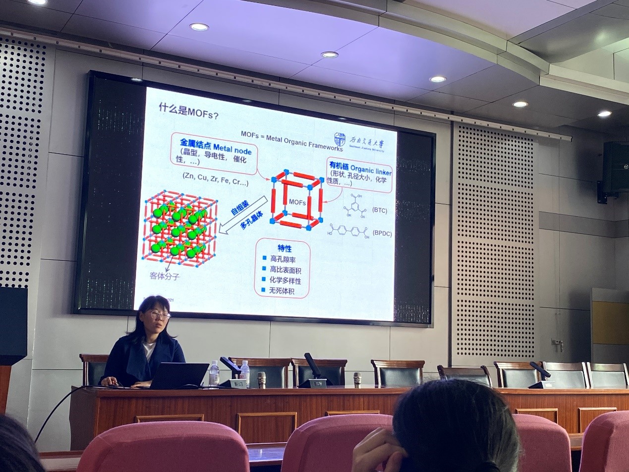 报告会上,秦伟伟博士介绍了表面镶嵌金属-有机框架(SURMOFs)磁性颗粒的制备及其在色谱分离中的应用。主要通过液相外延(LPE)技术合成了基于多孔MOFs的新型shell/core色谱柱填料,MOFs的独特结构导致显著的尺寸排阻效应,并对同分异构体混合物具有高度的选择性,提高了色谱柱的分离效果,拓宽了MOFs材料在液相色谱分离中的应用。