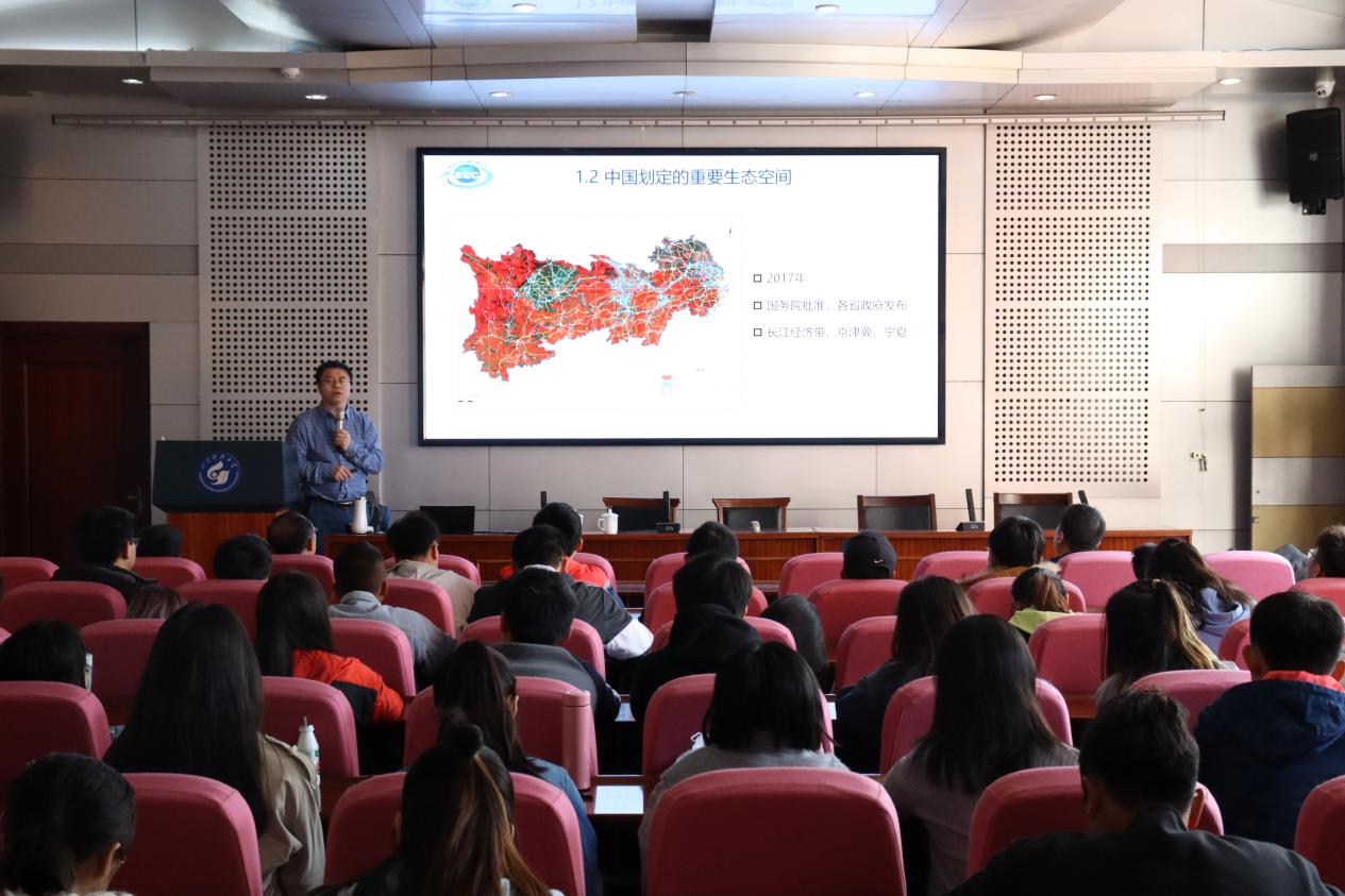 侯鹏从国家重要生态空间的现状、国家生态空间管控的主要政策、国家生态监管业务化技术支撑体系三个方面进行了阐述。首先对我国以国家公园为主体的自然保护地体系进行分析,并指出自然保护地是生态文明建设的核心载体;其次,通过讲述我国生态文明从萌芽到日渐成熟的发展过程,展示当前生态文明建设工作已经取得的阶段性胜利;最后,就定期遥感对自然保护区生态状况监测成效做了评估。本次报告会既高屋建瓴,又纲举目张,既有宏观层面的政策解读,又有实操层面的案例分析,深入浅出,图文并茂,生动形象,对我院环境专业的学习和工作具有很强的指导意义。侯鹏号召同学们要学以致用,将理论与实践融合,在七十年校庆到来之际,继续开拓创新,谱写学院与学校的新篇章!(郭熙 刘方冬)
